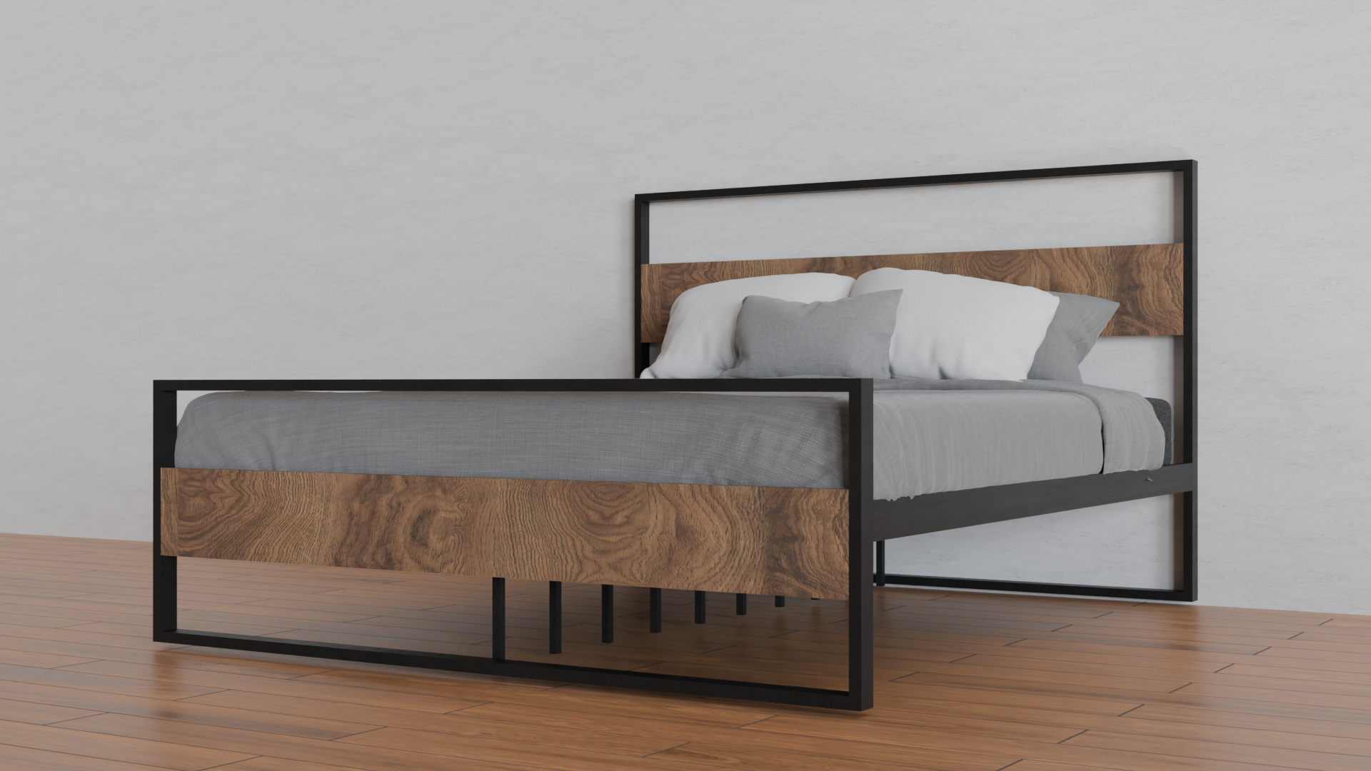 The MAYA Bedframe is a minimalistic metal bedframe with Wooden PLBs on the headboard and footboard, making it look more rustic.